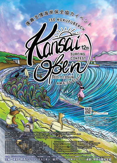 第12回関西オープン2025 伊勢志摩・国府の浜 2025年7月13日(日) 皆さんありがとうございました。 波と天候に恵まれ無事に開催させて頂きました。 エントリー協力者323名(16歳以下47名) スタッフ協力者44名、運営費寄付26口、 物品協賛8社、この皆さんのおかげで 復興支援海岸保全協力金として ¥875000を預かりました。 この支援金は志摩市にお願いして 復興支援金、もしくは海岸保全協力金として どこかへ送金させて頂きます。 結果報告はこちら また、次回も皆さんの協力をよろしくお願い致します。 |
