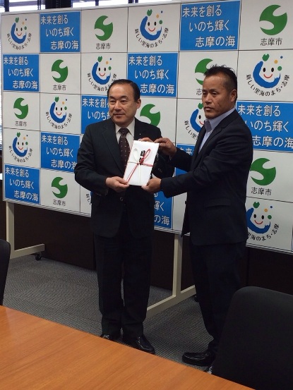 昨年は市議会議員選挙もあったり・・・、皆さんの時間調整が上手くいかず・・・ 年を越してしまいましたが、2014年1月29日 志摩市長も志摩市の方々もいろいろとお忙しい中、私達のために時間を作っていただき 復興支援金のお願いを快くうけて頂きました。 2月19日・志摩市長から気仙沼市と東松島市に送金して頂きました。 |