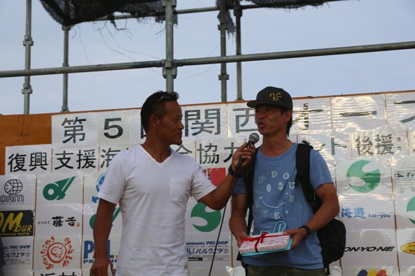 | 志摩市からの記念品を当てたのはジャッジスタッフの岸上哲也さん |
