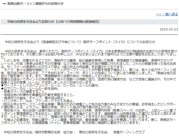 | 和歌山の御坊方面からモラルの悪いサーファーに対して警告が届いてます。 | ||||||||||||||