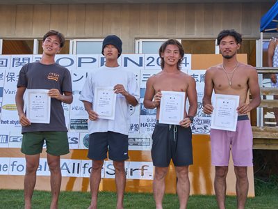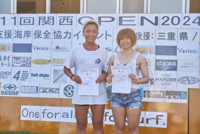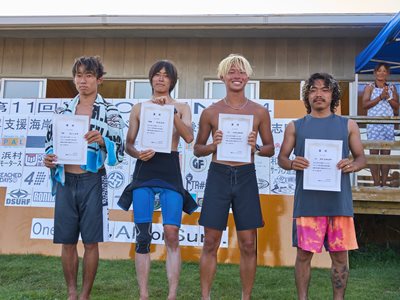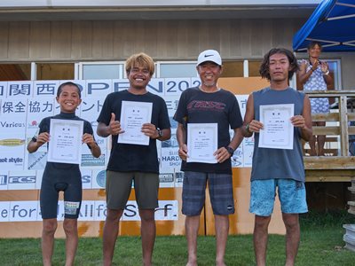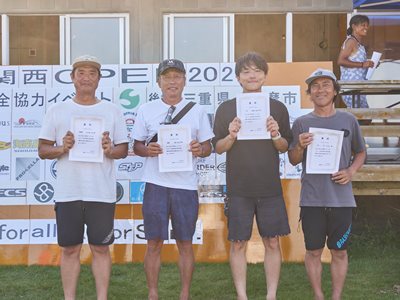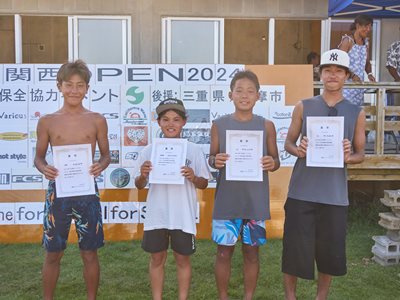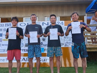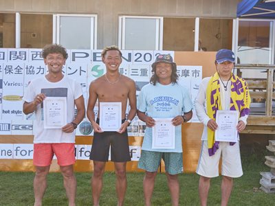 復興支援海岸保全協力イベント 第11回関西オープン 2024年8月4日(日) 伊勢志摩・国府の浜 主催・運営:関西サーファーズユニオン 協力:NSA(日本サーフィン連盟)関西近隣各支部 後援:三重県 / 志摩市 皆さんありがとうございました。 今回は石川能登半島地震で被災された方々に 一日でも早く復旧復興して頂けるよう願って開催させて頂きました。 ジャッジ・スタッフは朝5時集合〜ミーティング・設営・準備を済ませ 6時〜選手集合、6時30分〜開会式とルール説明 橋爪志摩市長にも出席して頂き激励のお言葉を頂きました。 そして、7時〜3ポイント同時進行でヒートがスタート 当日の天候は晴れ(猛暑)、波はモモ〜コシ〜ハラ 午前中はフェイスも整いきれいなブレイクに恵まれましたが 午後から潮が引いてサイズダウンしてしまいました しかし、夕方の決勝まで何とかブレイクに恵まれ 夕方4時50分すべてのヒートが終了し表彰式まで 無事終了させて頂きました。 今回このイベントに携わってくださったすべての方々に感謝致します。 ありがとうございました。 エントリー協力者273名(16歳以下43名) スタッフ協力者46名、運営費寄付36口、 物品協賛12社、この皆さんのおかげで 復興支援金として¥733000を預かりました。 この支援金は志摩市にお願いして石川能登へ送金させて頂きます。